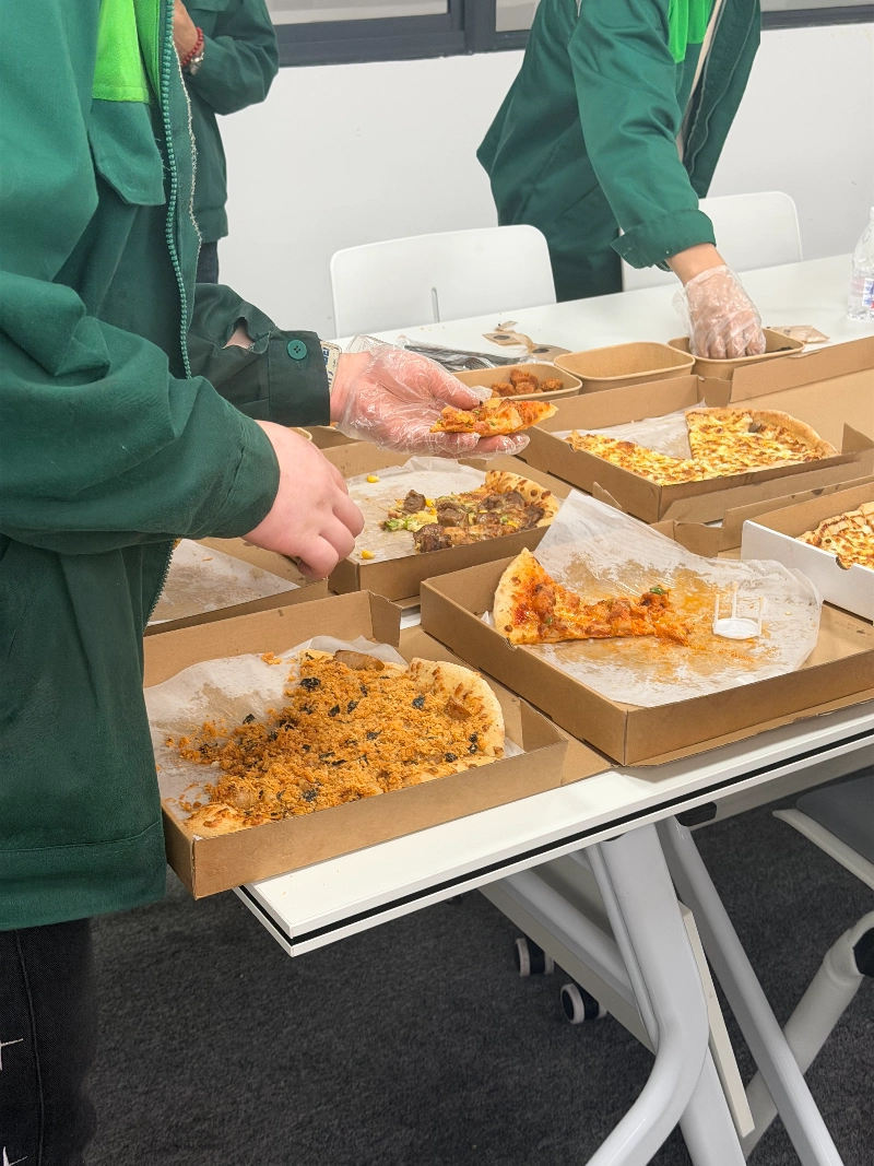 ピザのスライス、思いやりのしるし。シンプルなご褒美が、静かにチームの結束を高めました。